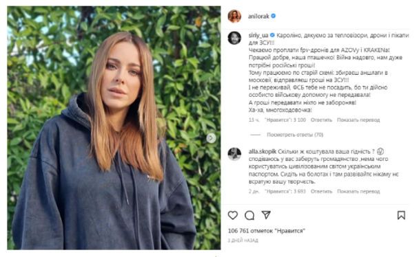 У россиян по этому поводу началась истерика — они восприняли подобные комментарии всерьёз. Лорак даже пришлось писать оправдательный пост в соцсетях. Однако украинцы и там оставили свои «благодарственные» комментарии.