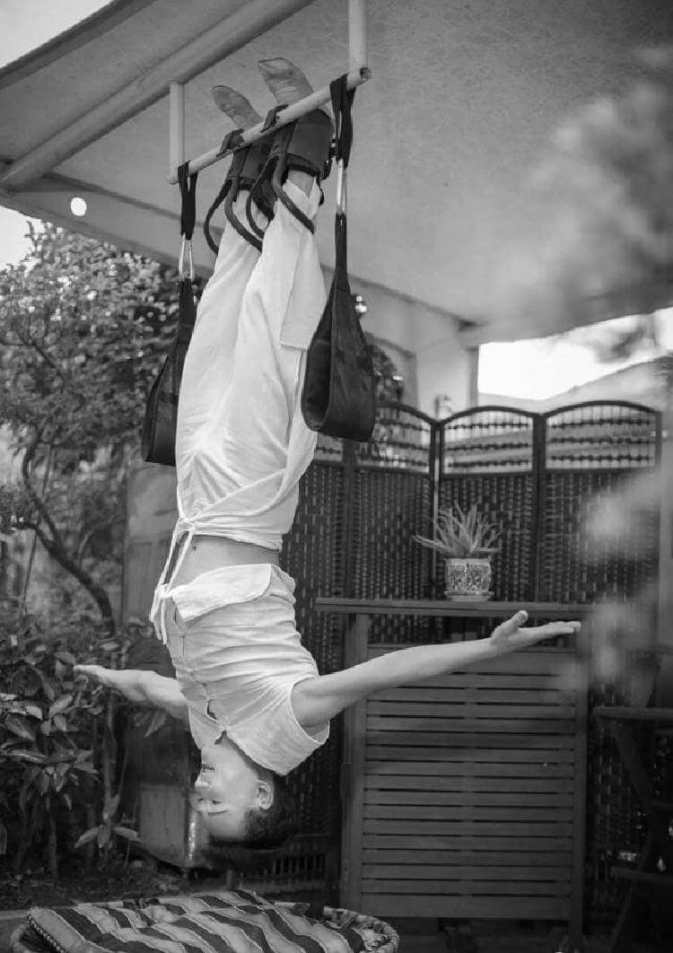 Чтобы поддерживать форму, он практикует йогу, медитацию, и висит вверх ногами 30 минут в день