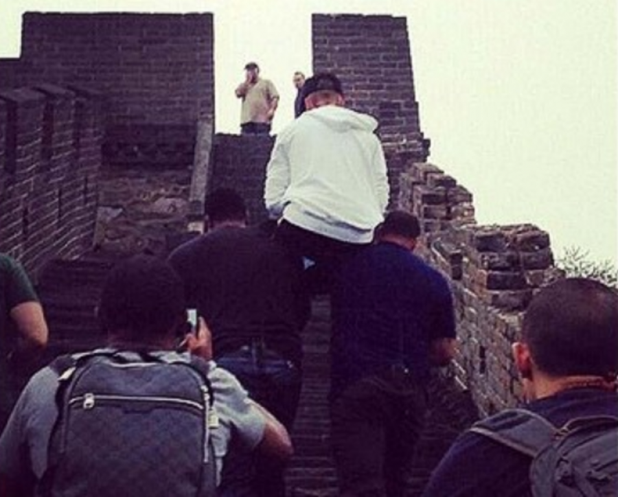 Еще одна причина не любить Джастина Бибера: многие прозвали исполнителя “дивой», после того, как увидели фото ,на котором охранники несут его на Великую Китайскую Стену.