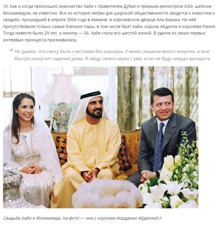 Речь идет о принцессе Хайе — шестой жене Шейха Моххамеда. Интересно больше узнать об этой яркой личности? Тогда приглашаем почитать эту небольшую статью.