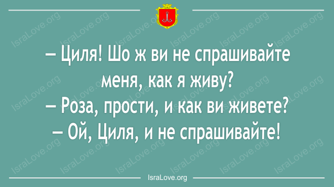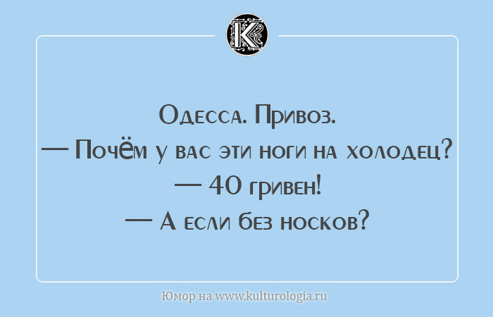 Ах, Одесса! Как же богат этот край на всяческого рода шутки-прибаутки! Как же остроумно и метко умеет шутить одесский народ на самые злободневные темы, как удачно подбирают слова. К счастью, этот уникальный талант – достояние всего мира, ведь их анекдоты со скоростью звука разлетаются по бескрайним просторам сети.