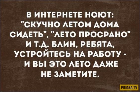 Даже не совсем наблюдательный читатель заметит — эта юмористическая подборка существенно отличается от тех, что мы представляли вам до этого. И отличается она своим юмористическим составом, который пропитан совершенно другим настроением. Сюда вмещены исключительно острые, ироничные, саркастичные шутки и анекдоты, которые рассмешат своей жизненностью. Такой юмор мы называем одним словом – нетривиальный. И предназначен он для всех, кто устал от обычных плоских шуток.