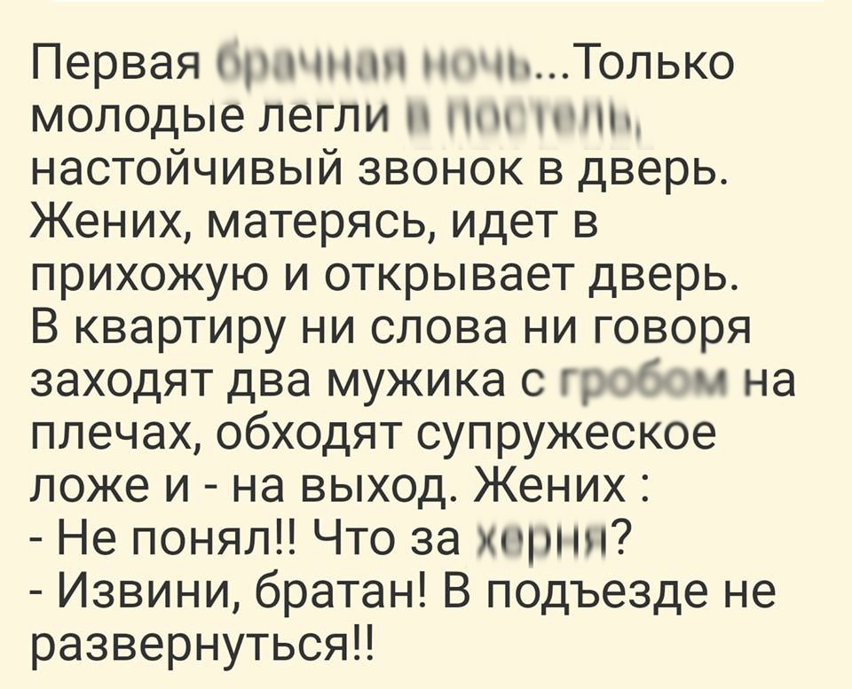 Сегодня в нашей подборке – 9 отменных шуточек во главе с пикантным анекдотом про первую брачную ночь. Надеемся, этот юмор сделать ваш вечер субботы ещё ярче….