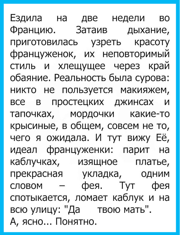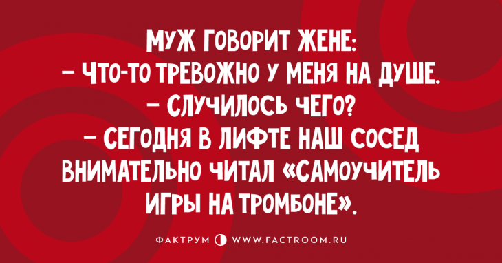 С регулярной периодичностью мы публикуем здесь самые смешные анекдоты сети. И вот, хотим подбить некоторые промежуточные результаты. Во-первых, наши читатели стали более жизнерадостными. Во-вторых, они узнали множество искромётных шуточек, которые потом при случае рассказывают в компании. В-третьих, они делятся своим позитивом с окружающими, а значит, делают этот мир чуточку лучше. Да и мы заодно с вами регулярно подпитываемся оптимизмом.