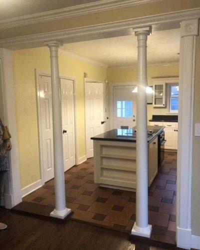 Когда в доме слишком много свободного пространства, начинаешь его заполнять чем попало… Как, например, установить колонны прямо на кухонном острове.