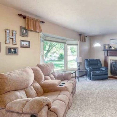 И тут возникает два вопроса: к чему такие шторы и почему выбрано именно чёрное кожаное кресло?