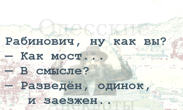 — Рабинович, как жизнь? Рабинович, со вздохом: