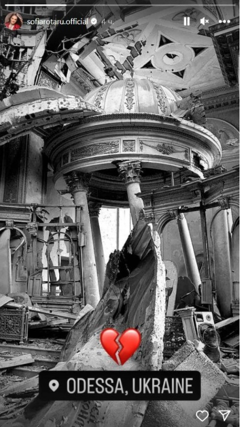Ротару опубликовала у себя в Инстаграм сторис фото руин святыни, сопроводив его сострадательным эмодзи.