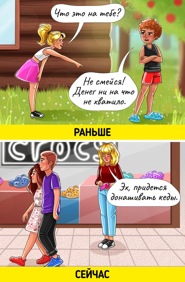 14. Сначала обувь от Crocs была дешевой и все считали ее страшной. Потом люди начали надевать ее, подчеркивая свою смелость и независимость от общественного мнения. Теперь бедным придется забыть о кроксах