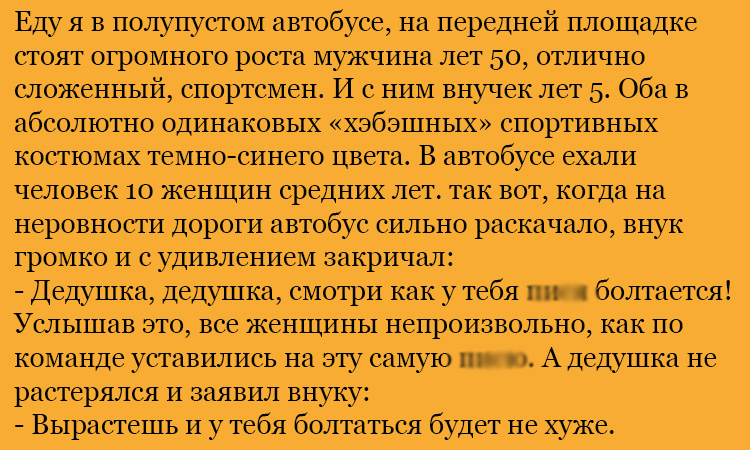Есть темы, которые обсуждать сложно, а вот шутить на них — просто. И пикантно- острые истории — первые из них. И сейчас, в самый разгар рабочего дня и трудовой недели, мы решили пошалить, и нашли такой анекдоты — взрослый и смелый, который заставит всех похохотать от души.