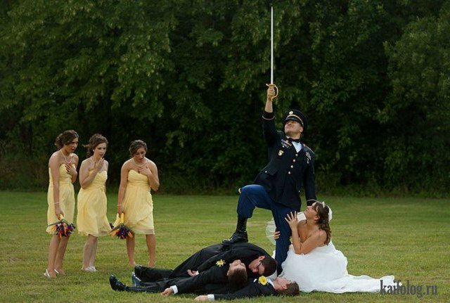 Впрочем, для каждого понятие романтики своё. Настолько своё, что иногда картина вовсе не вяжется с общепринятыми представлениями. Но тем интереснее! Ведь так и появляются наши новые удивительные фото-подборки со свадеб. И сегодня у вас есть очередной повод для веселья и утоления любопытства.