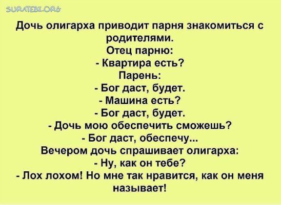 Выходные дни сами по себе располагают к максимально позитивному настроению. А если еще насладиться порцией самого свежего юмора — день точно пройдет великолепно. Пусть в Вашей жизни будет как можно больше поводов для искреннего смеха и улыбок, а мы сделаем все, чтоб этому содействовать!