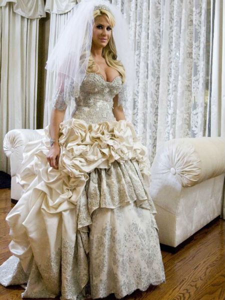 Впрочем, часто знаменитостей подводит стремление постоянно эпатировать. Это проявляется даже в выборе свадебного платья. Как результат – странные и порой даже забавные подвенечные наряды.