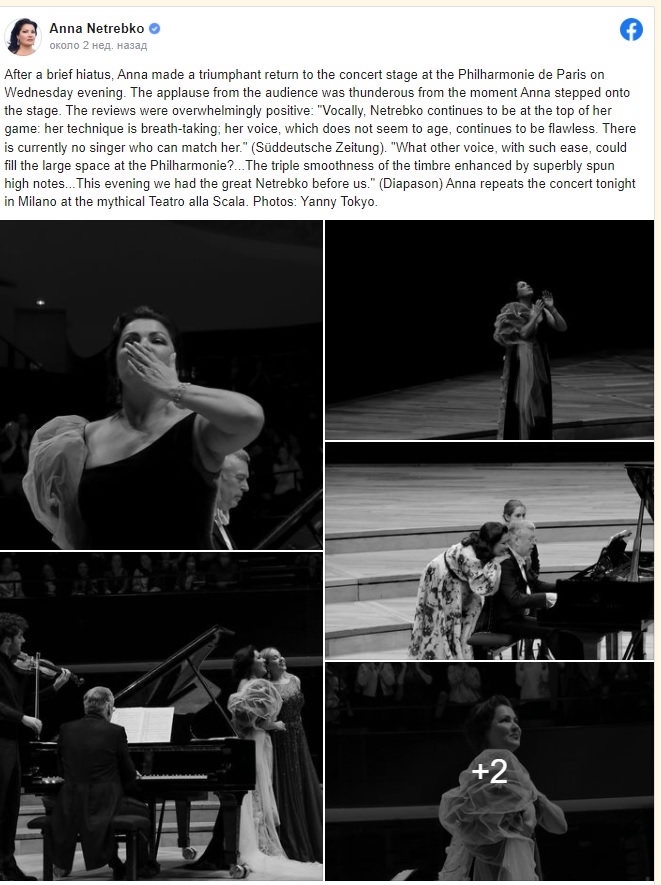 «После короткого перерыва Анна совершила триумфальное возвращение на концертную сцену Парижской филармонии», – пишут в публикации.