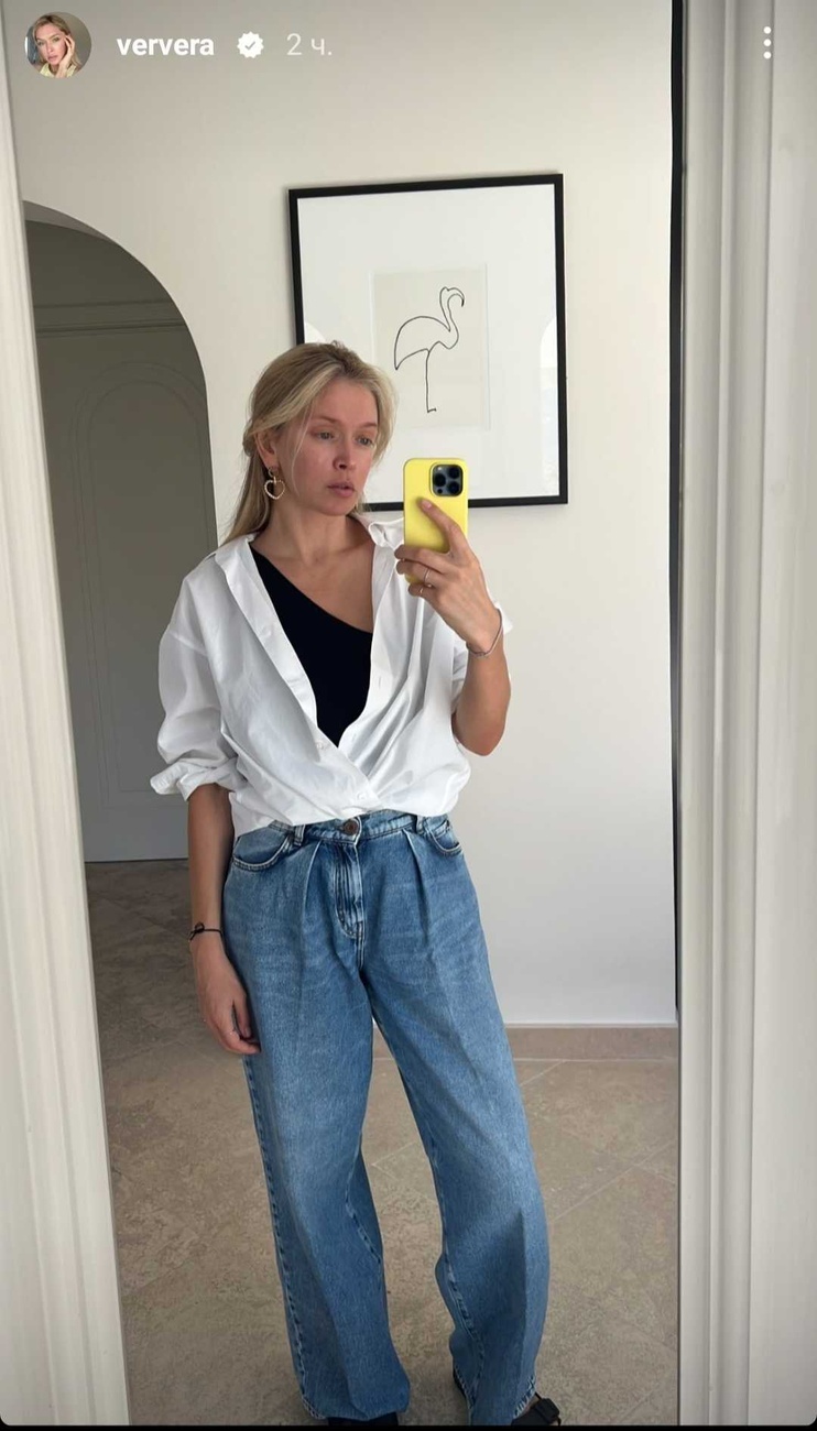 На днях украинская певица Вера Брежнева, которая на время войны в Украине перебралась в Италию, опубликовала в Instagram Stories новое сэлфи. На этом фото Брежнева позирует в бесформенных джинсах, черном топе и широкой белой рубашке. При этом артистка запечатлена без макияжа.