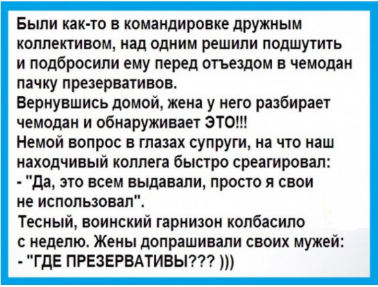 Первый рабочий день просто необходимо завершить красиво и душевно. Например, в компании тёплого пледа и согревающего напитка. Или же в весёлой компании единомышленников. Или же на приятной прогулке. Для каждого свои способы расслабиться. Но мы в любом случае предлагаем не забыть о прочтении наших великолепных анекдотов. Ведь они способны скрасить любой вечер. С ними вам точно будет веселее. А потому, устраивайтесь поудобнее – вас ждёт минутка хорошего юмора!