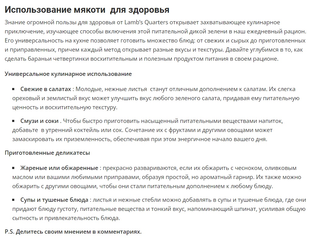 Вы знаете его под народными названиями «гусиная лапка», «дикий шпинат» или даже «толстая курица» — зависимо от того, в каких широтах живёте. Теперь, прочитав эту короткую статью, наверняка будете внимательнее присматриваться к столь необычному растению, которое, к слову, способно существенно укрепить ваше здоровье.