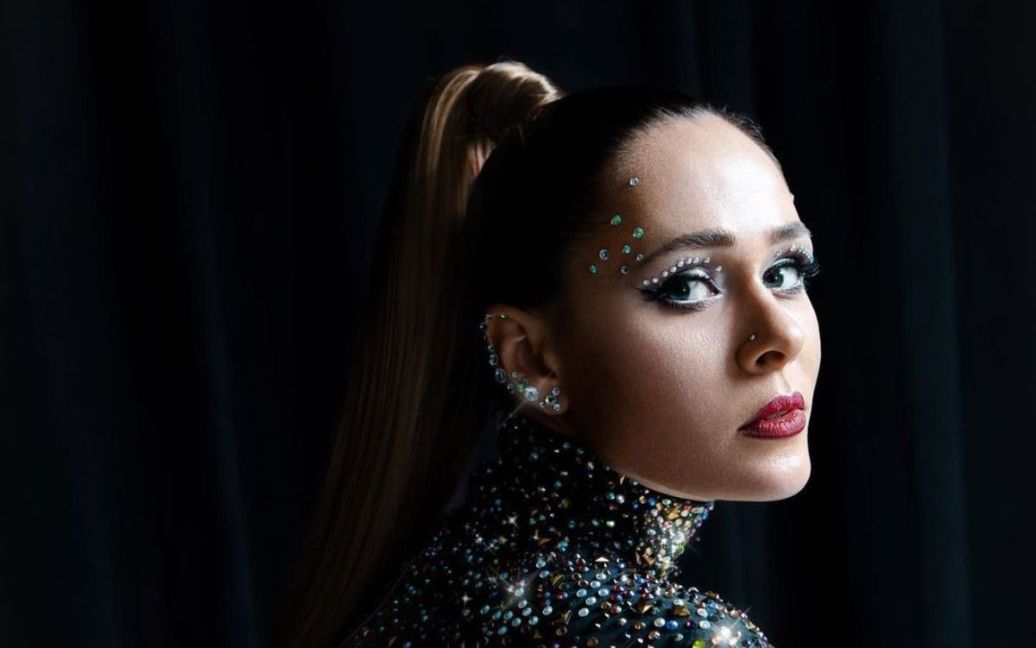 На заглавном фото фронтвумен группы одета в облегающее гламурное платье со стразами. Наряд дополнил макияж, в котором также были блестящие камни.