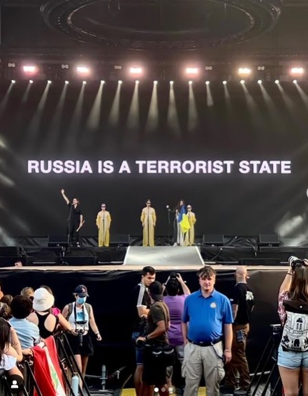 Так, в ходе выступления украинские музыканты использовали видео-экран, чтобы показать публике кадры вoенных преступлений рф в Украине, высказать свою гражданскую позицию с помощью текстовых лозунгов.
