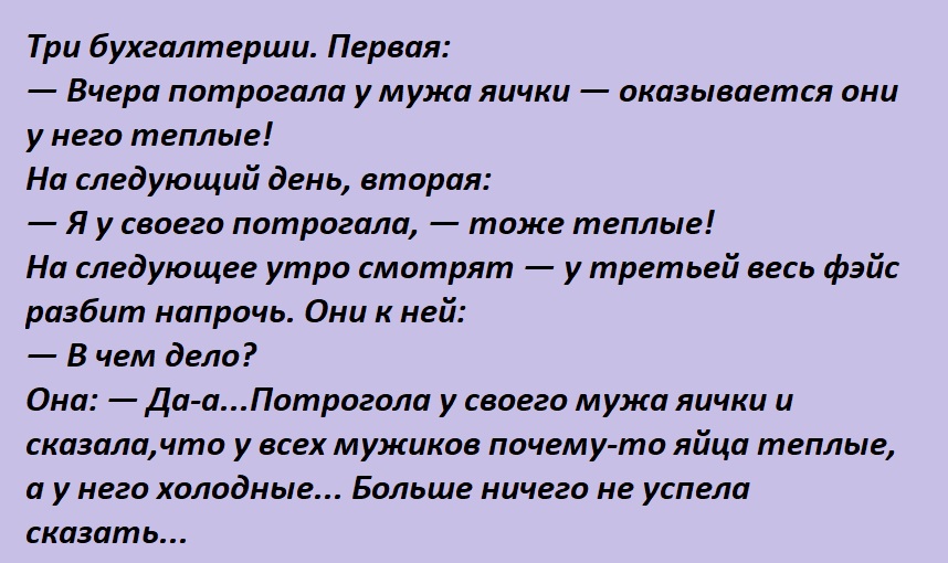 Вечер – на то и вечер, чтобы всё живое смогло отдохнуть от дневной суеты и забот. Чтобы и мы, люди, смогли расслабиться и отвлечься после своего рабочего дня. И хоть немного времени посвятить себе. Тем более, что для этого у вас на вооружении несколько очень зажигательных анекдотов. Они и развлекут, и настроение создадут. А чем заняться дальше – дело исключительно вашей фантазии.
