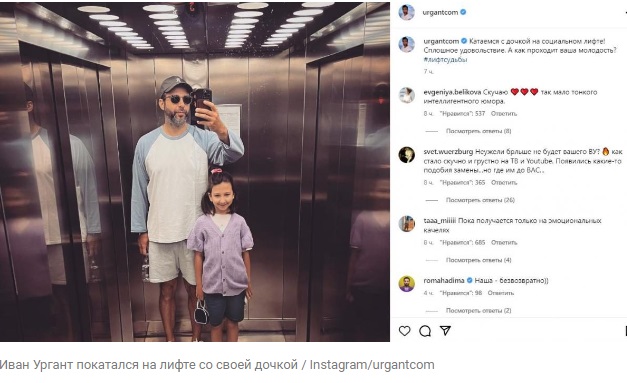 «Катаемся с дочкой на социальном лифте! Сплошное удовольствие. А как проходит ваша молодость?» — написал Ургант.