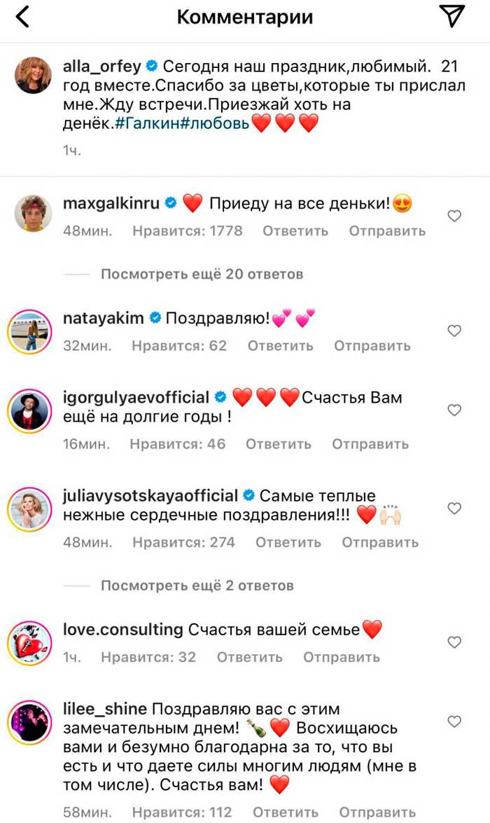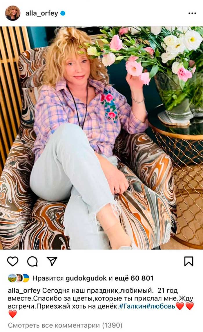 Знаменательный день Галкин встретил на гастролях, которые сейчас занимают 90% его свободного времени. Однако Алла Борисовна в своих соцсетях не поленилась обратиться к любимому: