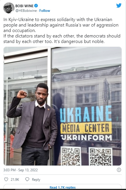 В гости в Украину на днях приехал известный актер, политик и певец из Уганды Боби Вайн. Соответствующее фото он разместил в своём Twitter-аккаунте.