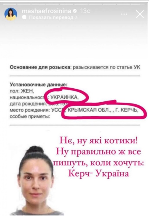 «Физические лица: Ефросинина Мария Александровна, 25.05.1979 года рождения, место рождения − город Керчь Крымской области Украинской ССР», – указано на сайте.