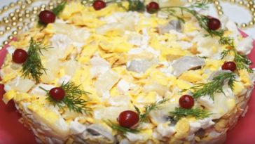 Вкусный и простой салат к празднику 8 Марта. Легко готовится, быстро съедается!