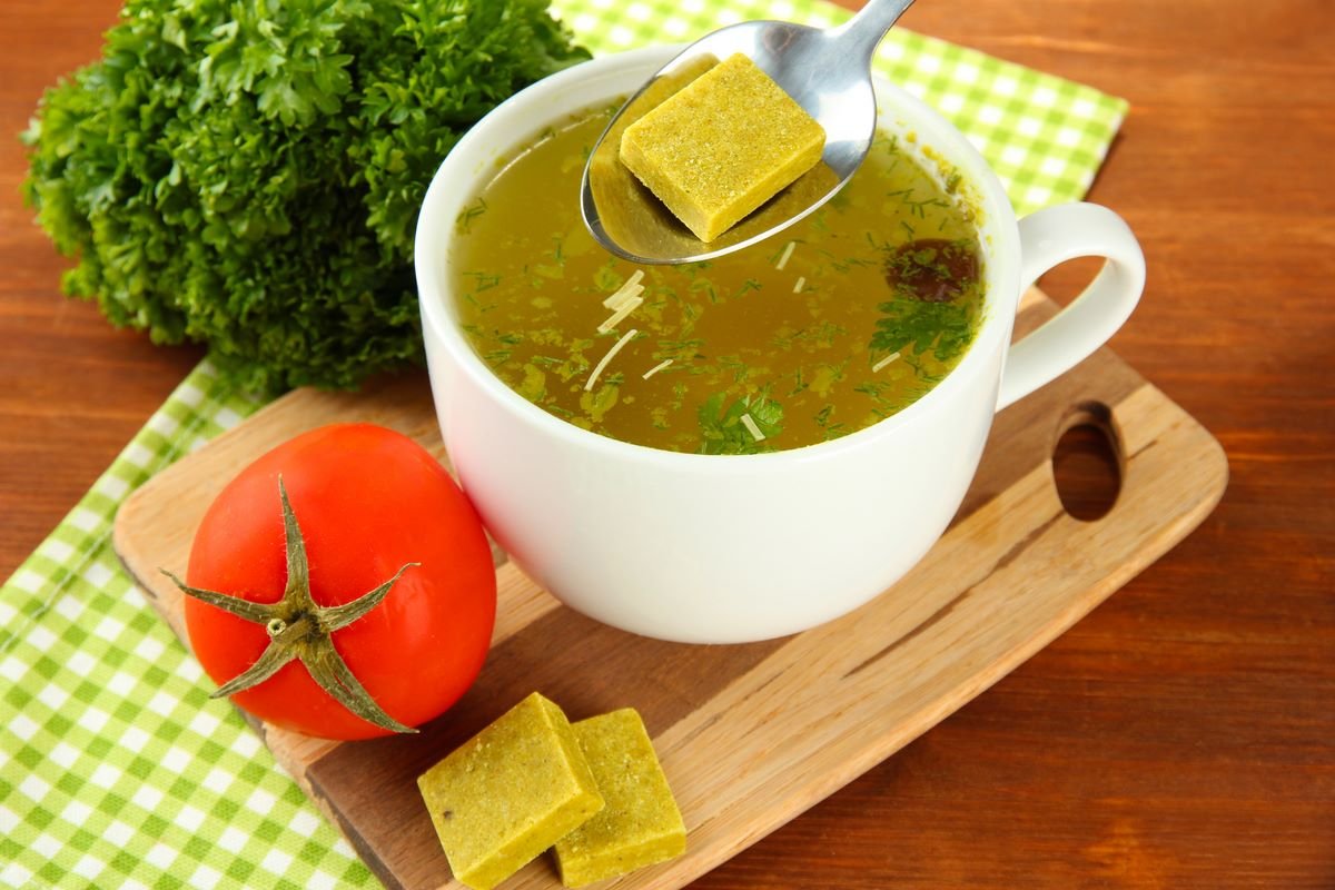 Этот продукт — далеко не изобретение последних лет. Невероятно, но бульонные кубики появились несколько веков тому назад. Они не теряют своей популярности в том числе потому, что могут храниться около 2 лет. Все благодаря составу. Кубики делают из обезвоженного бульона, овощей, специй, жира и глутамата натрия. А если ты предпочитаешь натуральные супы, то вот отличный рецепт солянки.