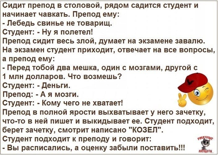 Пусть наша вечерняя порция анекдотов подарит Вам максимум веселья и море позитива! Засыпайте с улыбкой, и просыпайтесь с нею же каждый день!