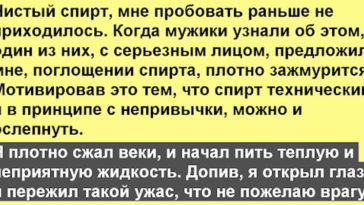 Устроился я на работу, на один завод, где для технологических нужд выдавали спирт. Выпить я был любитель, особенно под хорошую закуску…