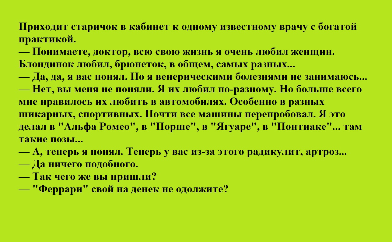 Итак, настраивайтесь на оптимизм и начинаем нашу терапию юмора…