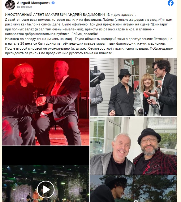 Фестиваль Laima Rendezvous Jūrmala 2023 в Юрмале закончился, однако звезды продолжают делиться своими впечатлениями. Так, вчера, 1 августа, российский музыкант, признанный иноагент рф — Андрей Макаревич на своей странице в Фейсбук опубликовал свежий пост с фото и видео с трех концертных дней.