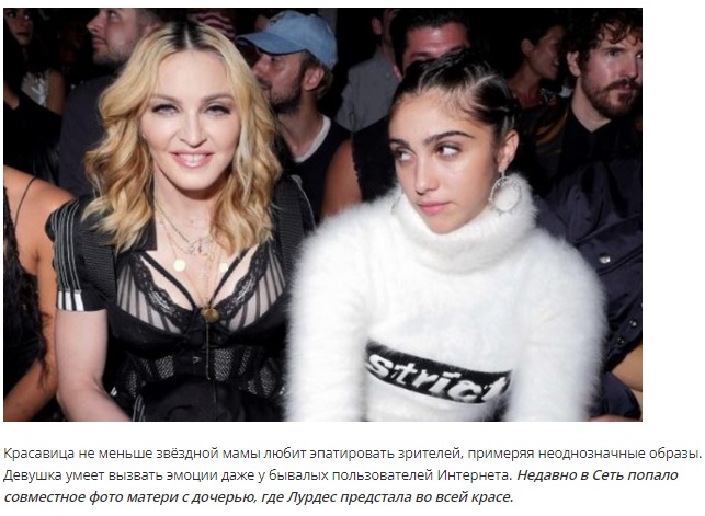 И, кажется, эту звездную особенность унаследовала и дочь певицы — Лурдес. Как и мать, девушке скучно жить в обычном человеческом подобии.