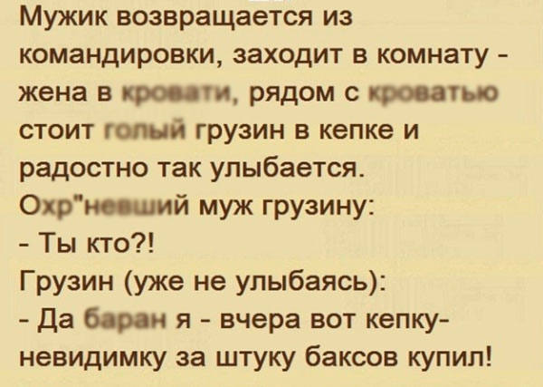 Вечер четверга — любимое время недели всех работающих по стандартному графику людей. Сегодня можно расслабиться от души, погулять, повеселится или наоборот, с чистой совестью просто полежать на диване. А для чудесного настроения предлагаем всем зарядиться позитивом от новенькой подборки анекдотов, шуточек и всяких забавностей, которые повеселят всех.