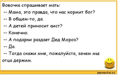 Доброе утро, дорогие читатели, подписчики и просто случайно заглянувшие гости! Сообщаем, что на календаре вторник, 23 марта. Таким образом, весна всё смелее вступает в свою силу. И, может, это ещё не ощущается в погоде, но в сердцах-то её разбудить гораздо легче. Нужно только искренне этого захотеть. Ну и, конечно, читать наши анекдоты. Они настраивают на позитив, помогают взбодриться, продлевают счастливую жизнь, а заодно и омолаживают. Да-да, именно так, ведь человек с искренней улыбкой на лице моментально стирает с лица весь груз прожитых лет.