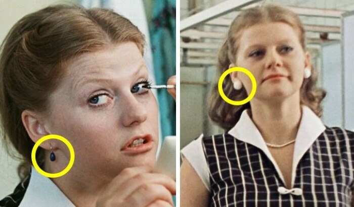 В фильме достаточно много деталей, которые выдают, что дубли одного эпизода снимались в разные дни. Например у Верочки, обожающей сплетничать, наряжаться и учить других моде, с баснословной скоростью меняется как цвет ногтей, так и одежда.