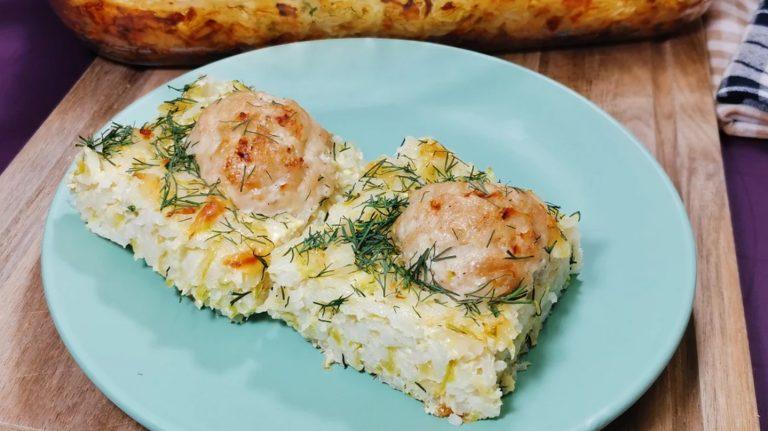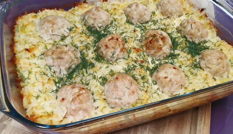 Очень простое и интересное блюдо из запечённых в кабачках фрикаделек.