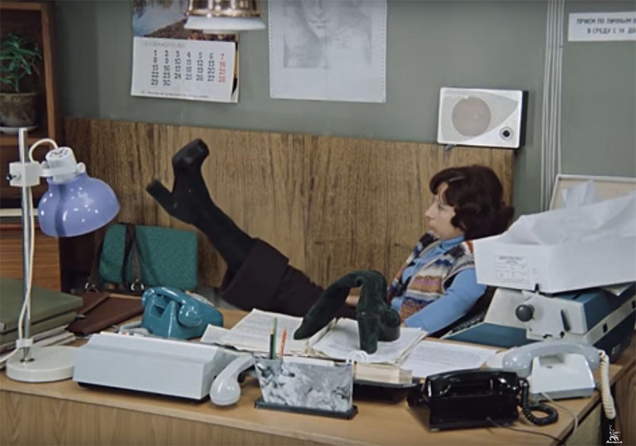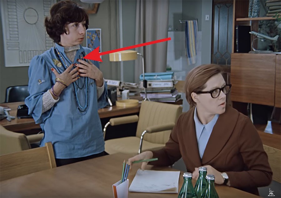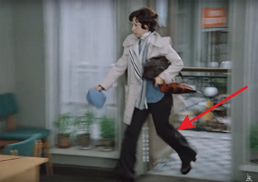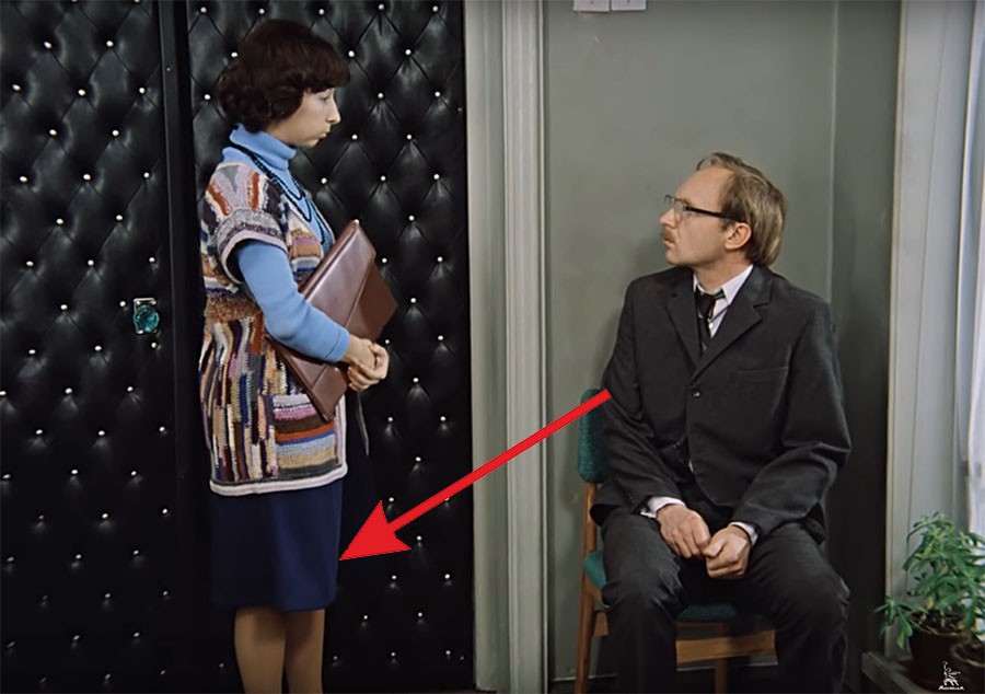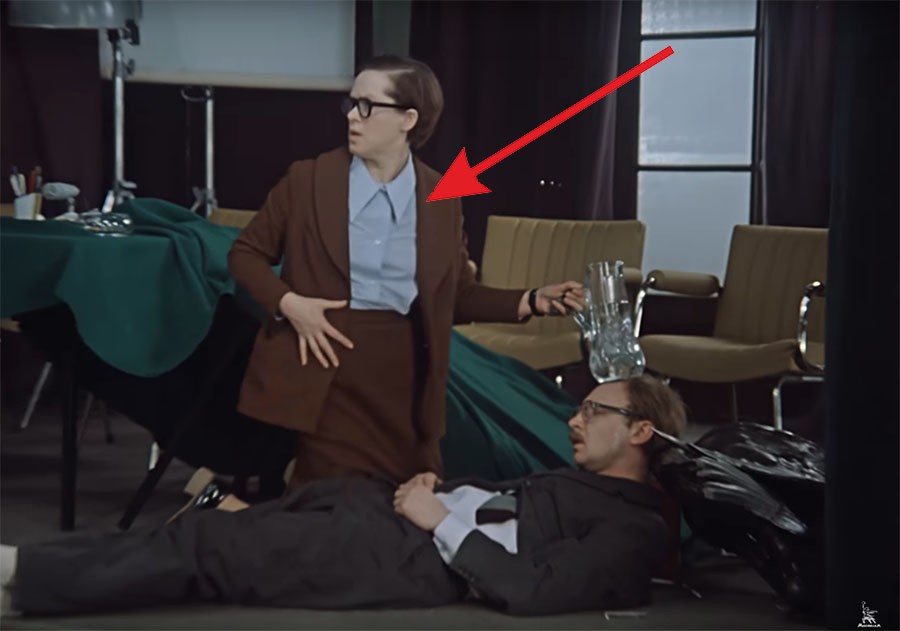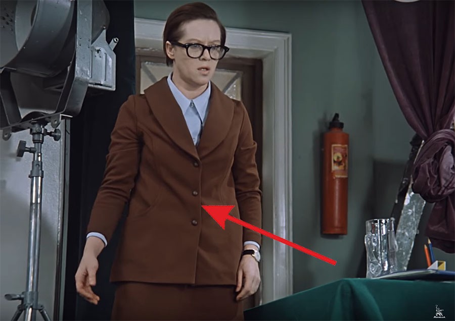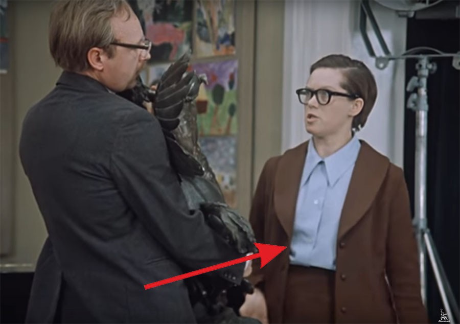 К примеру, Верочка, секретарша Калугиной, в одном из эпизодов прибегает на работу в брюках.