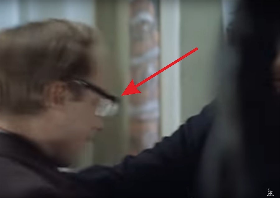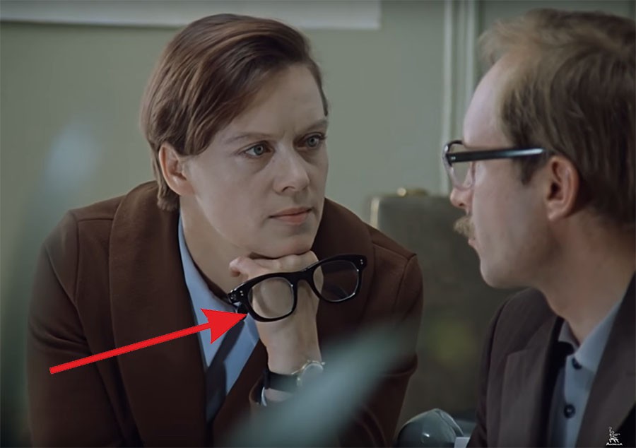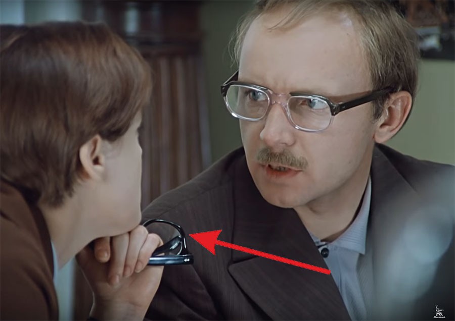 Или вот ещё. После того, как Новосельцев дал Самохвалову пощёчину, в момент когда зам директора схватил за грудки своего бывшего однокашника, тот успел снять очки.