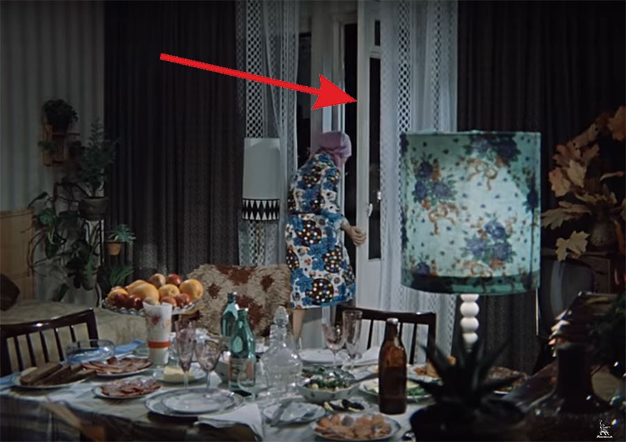 Ну и последний замеченный ляп (ну или недосмотр). Когда Людмила Прокофьевна ждала Анатолия Ефремовича на ужин, она вышла на балкон. Взгляните, балконная дверь находится справа от окна.
