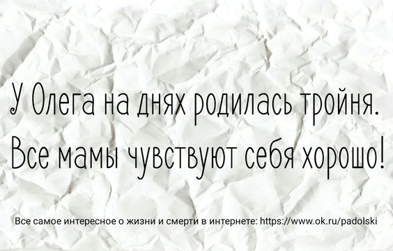 В мире могут заканчиваться запасы нефти, полезных ископаемых и даже питьевой воды. Но что уж точно остаётся в достатке на сегодняшний день – так это запасы юмора. Ведь они регулярно пополняются, благодаря людям с отменным чувством юмора. И мало того, что запасы юмора пополняются, они ещё и с лёгкостью распространяются в интернете, благодаря всем, кто любит посмеяться. Таким образом, мы обеспечиваем себе постоянный поток свежих шуток, забавностей и анекдотов. А значит, в вашей ленте соцсетей и дальше будут появляться новые поводы для улыбки и смеха.
