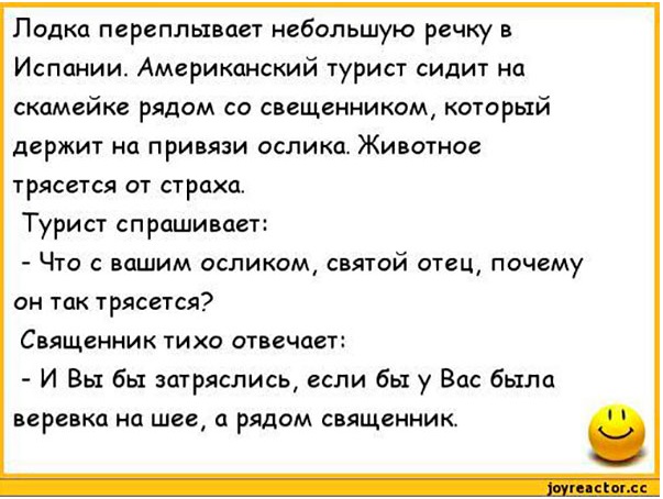 Конечно, эта подборка – просто несколько удачных анекдотов, которые в глобальном плане никак не повлияют на жизнь, но эффект от прочтения всё же почти волшебный. Сами посудите – каждая шутка так или иначе делает настроение лучше, а это, в свою очередь, позитивно влияет на день в целом. К тому же, в хорошем настроении можно и хоры свернуть.
